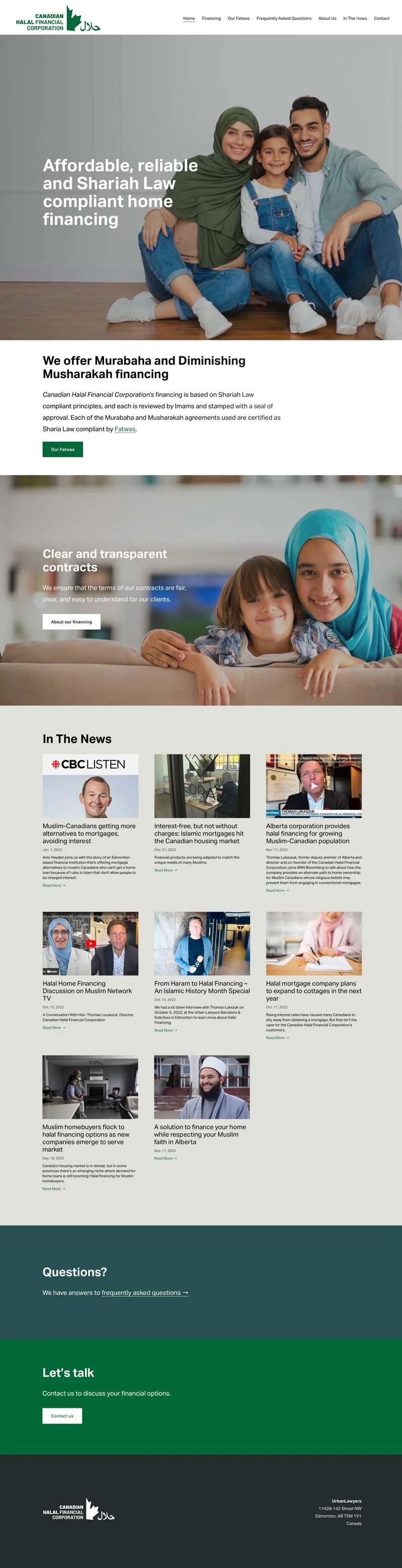 We had the opportunity to help the Canadian Halal Financial Corporation design their logo as well as their website.