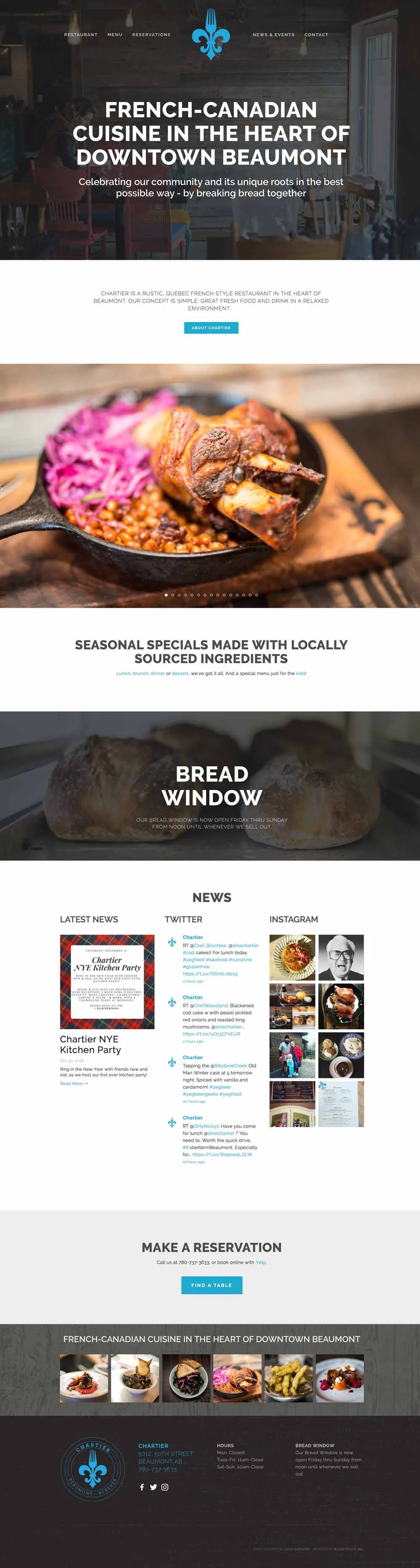 Chartier Restaurant New website design for Chartier in Beaumont, Alberta. Visit the site at dinechartier.com. WebsiteTanya CampNovember 3, 2016Squarespace Facebook0 Twitter LinkedIn0 Reddit Tumblr Pinterest0 0 Likes