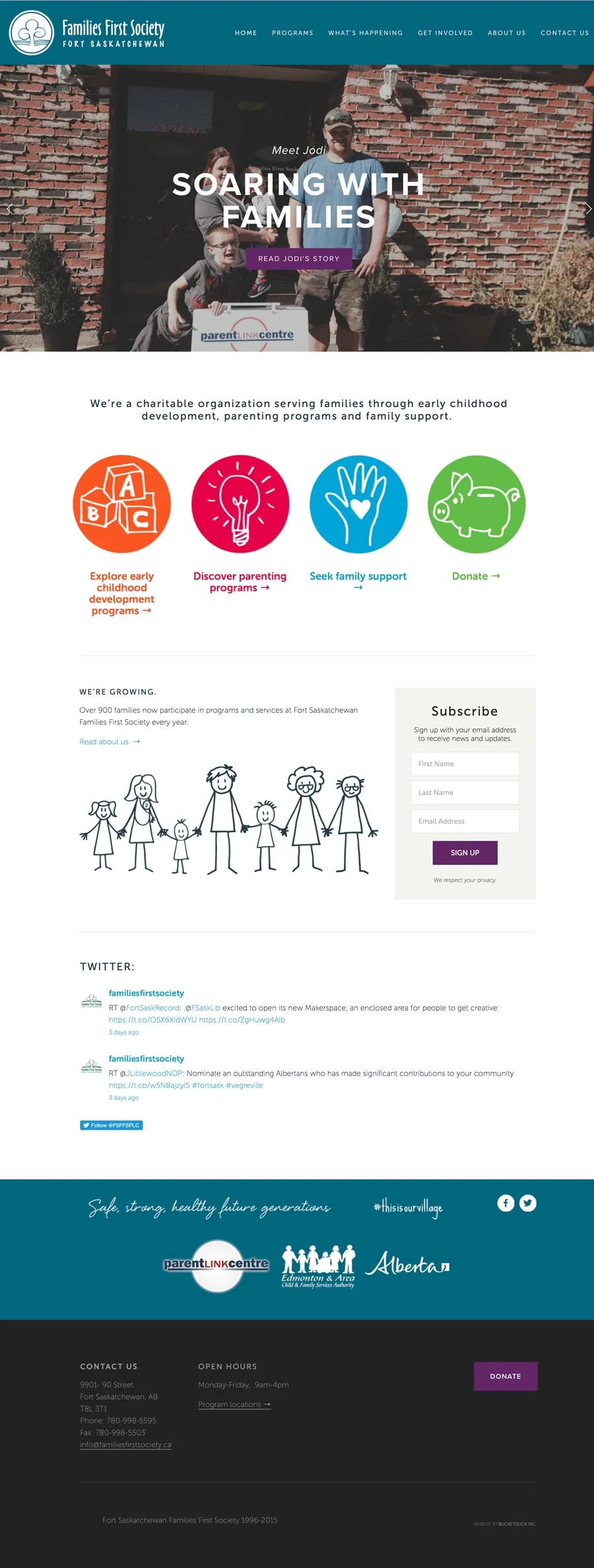 Logo refresh, illustrations, annual report design, and website design and development for the Fort Saskatchewan Families First Society. Website built using Squarespace (www.familiesfirstsociety.ca). Designed and developed by Tanya Camp