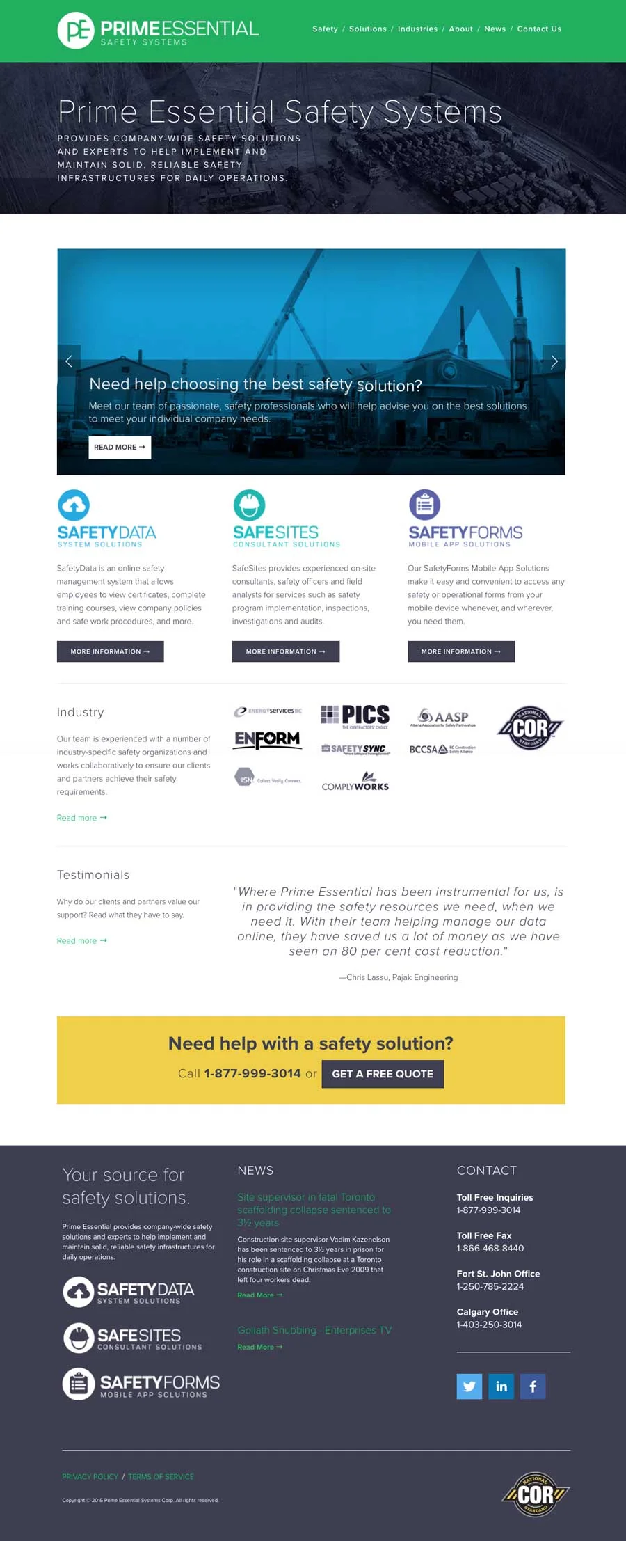 Prime Esential Safety Systems logo designs and website built using Squarespace. Designed by Tanya Camp, developed by Chris Cheng. Visit this site at www.primeessential.com